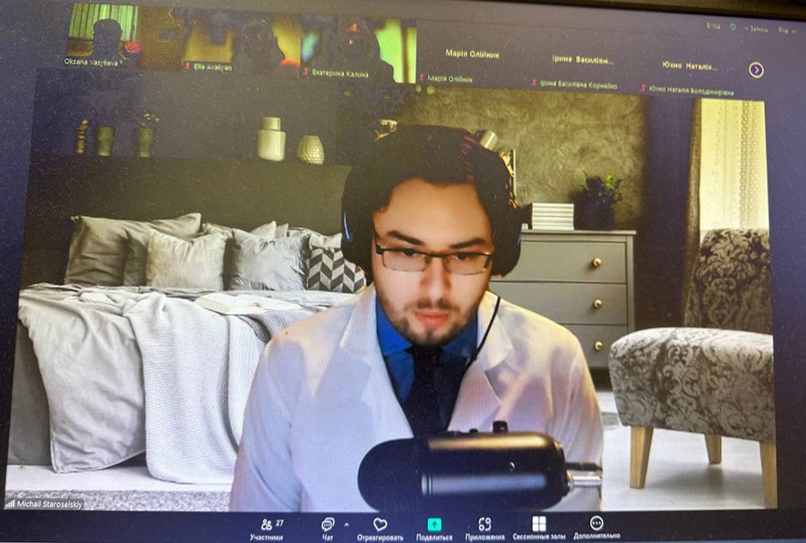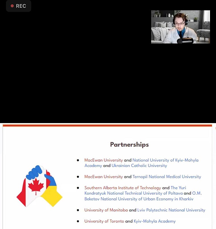 Despite the complete evacuation of foreign KhNMU students from Kharkiv due to the onset of full-scale russian federation invasion of Ukraine and the transition to hybrid learning (online at KhNMU and in-person through the International Academic Mobility Program in partner universities in Georgia), our English-speaking students remain with us and even attempt to assist the University in exploring new avenues of cooperation. For instance, during the face-to-face session of the international scientific-practical conference “Current Issues of Higher Medical Education Pedagogy”; held at KhNMU on May 28, 2024, Michail Staroselskiy, (Canada) VII Faculty for International Students at KhNMU, made an oral presentation in collaboration with representatives of “Tax Accounting and Business Solutions”company (Calgary, Canada) on potential cooperation opportunities between KhNMU and Canadian universities. The presentation was delivered in English in the section “Peculiarities of the pedagogical component of the educational space of institutions of higher medical education: international experience”; Michail made a presentation with Ella Avakyan, a representative of the Ukrainian diaspora in the Canadian province of Alberta, sparked interest among the audience and led to lively discussion in the conference.