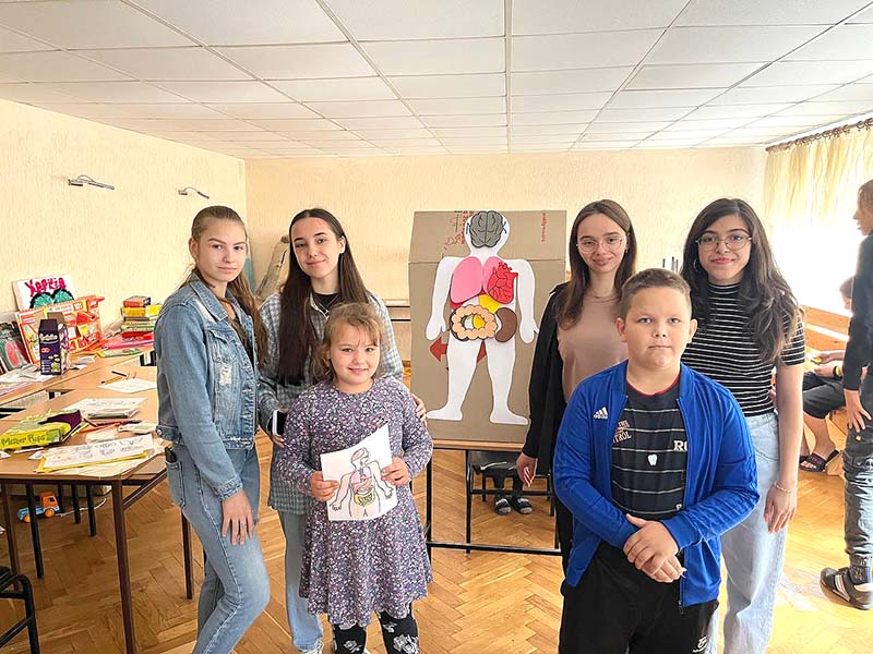 On September 16, the team of the volunteer sector “Era Caritas” of the Student Government of KhNMU visited children who were forced to leave their homes and relatives; children from low-income families who, due to the aggression of a terrorist country, are temporarily staying in dormitory No. 2 of the National Pharmaceutical University. Our medical students held the “Merry Consilium” event as part of the “Medical Background” project.