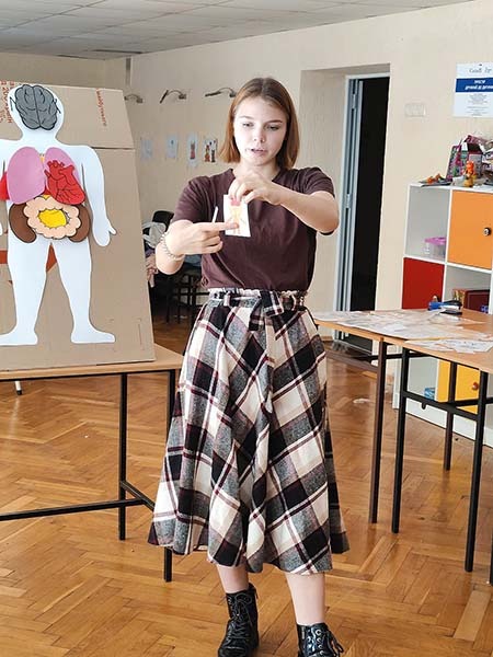 After that, work was carried out with the model of the human body. According to the named function, the children had to guess the organ that corresponds to it, after which the students gave the “organ” that had to be placed in the correct place on the human model. This helped the children to more clearly understand the topography of the organs inside the human body. External organs, such as skin, eyes, ears and nose, children could show on themselves and explore their own body. The children were completely immersed in the process and everyone wanted to try to guess first.
