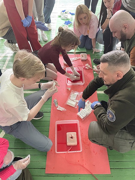 The participants of the training practiced the correct application of the tourniquet, tried to apply dry and wet tamponade on their own, and learned about the basic skills needed to provide medical care according to the MARCH algorithm. In addition, in order to bring the exercises as close as possible to real conditions, a substitute for real blood was used during the manipulations.