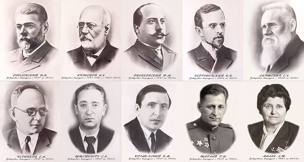 За час існування її завідувачами були Іван Михайлович Оболенський (1877–1884), Олександр Харитонович Кузнецов (1884–1891, 1903–1906), Федір Мечиславович Опенховський (1891–1903), Костянтин Миколайович Георгієвський (1906–1921), Сергій Гаврилович Якушевич (1921–1930), Євген Абрамович Черников (1930–1940), Соломон Якович Штейнберг (1941–1947), Віктор Мойсейович Коган-Ясний (1947–1953), Роман Іванович Шарлай (1953–1960), Любов Трохимівна Малая (1960–2003), Павло Григорович Кравчун (з 2003 р. і дотепер).