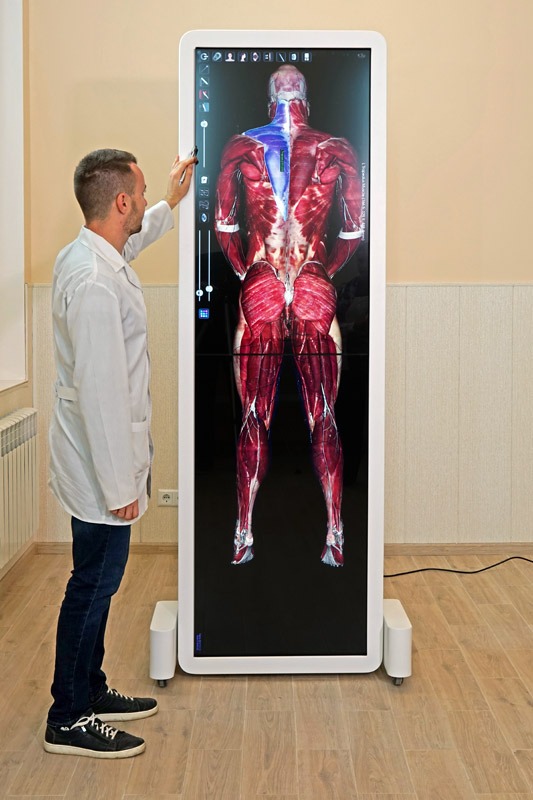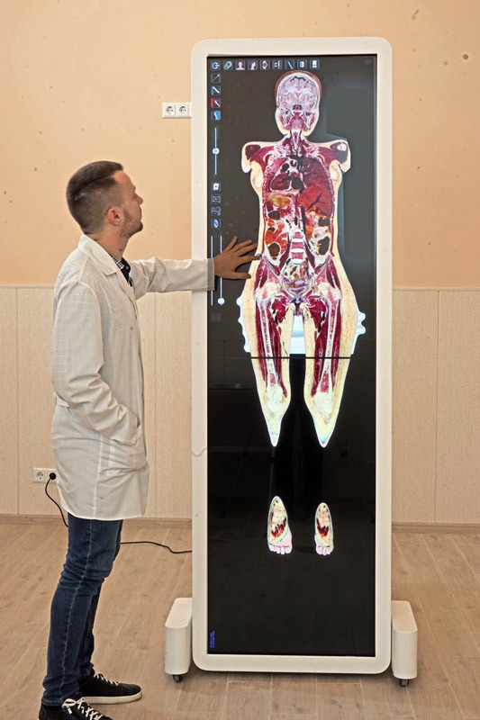 У цій лабораторії представлено Anatomage table, який є найбільш технологічно просунутою системою анатомічної візуалізації в медичній освіті, що прийнята багатьма провідними світовими медичними школами і університетами. Технічно Anatomage table являє собою дуже потужний комп’ютер з двома сенсорними панелями, він дуже простий у використанні та надає можливість наочно демонструвати групі студентів усі найбільш складні та складно доступні особливості будови тіла людини. Завдяки тому, що було придбано останню модель, а саме Anatomage table 6.0 convertible, можна працювати у двох режимах: горизонтальному та вертикальному. У програмному забезпеченні ми маємо чотири повноцінних тіла та п’яте, що зібране за допомогою КТ-досліджень (а це найбільша база серед існуючих анатомічних столів, яка не має аналогів) базу анатомічних структур надвисокої чіткості, бібліотеку патологічних станів, збірку гістологічних препаратів, каталог тривимірних фотографій анатомічних органів та ділянок тіла людини, ембріологічні зображення, навіть колекцію тривимірної анатомії тварин та ще багато іншого.