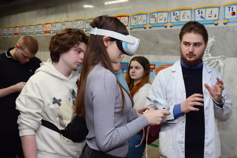 На вході перед Метрошколою для учасників було облаштовано фотозону, де школярі та гості заходу мали змогу зробити фото на пам’ять. Традиційно під час профорієнтаційних заходів медичний виш робить все, щоб учні шкіл могли детальніше ознайомитися зі спеціальностями й професіями та обрати своє майбутнє з ХНМУ.