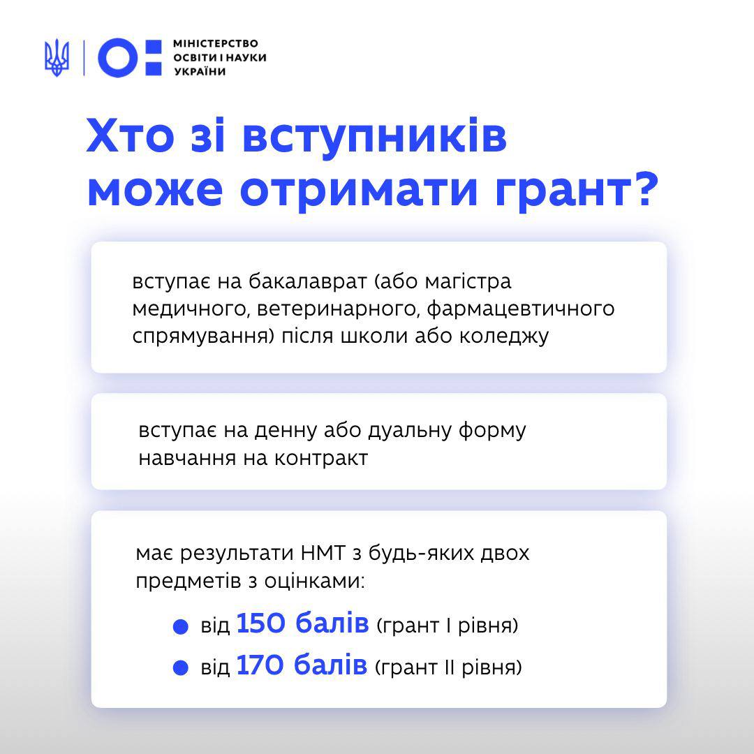 З 5 вересня студенти, які мають 2 результати з НМТ більше 150 (або більше 170) балів, зможуть в Дії подати заявку на отримання гранту.