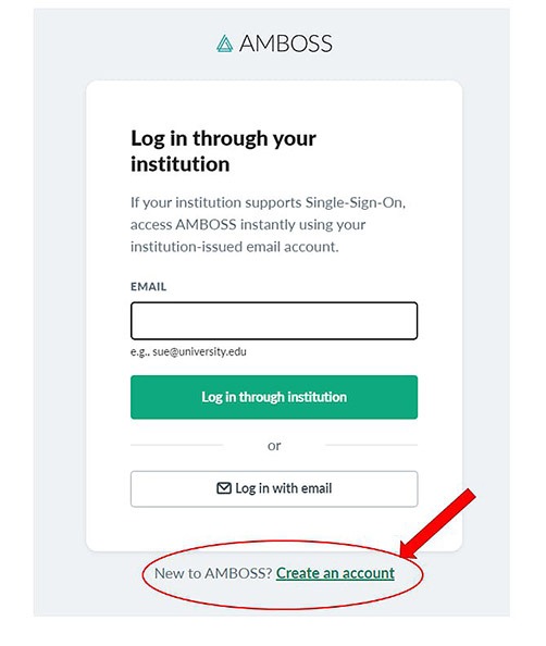 Доступ до платформи можна отримати за посиланням, далі Create an account, ввести свою корпоративну адресу @knmu.edu.ua та обрати пароль. Платформа доступна англійською мовою. Безкоштовний доступ до платформи надано до кінця 2023 року. AMBOSS також має зручний додаток для телефону.