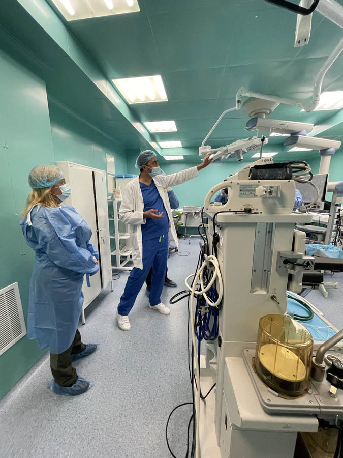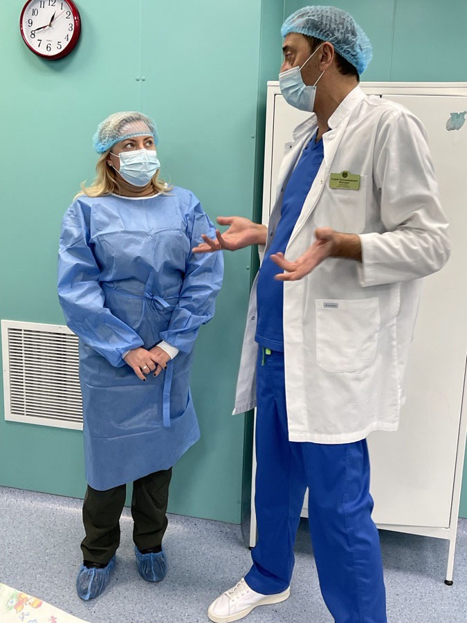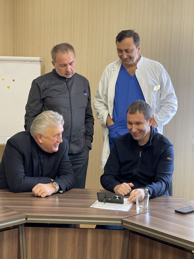 На базі клініки пані Тетяна зустрілася з керівництвом медичного вишу та директором Департаменту охорони здоров’я Харківської ОВА Максимом Хаустовим і ознайомилася з облаштуванням відділень, сучасним устаткуванням та організацією надання медичної допомоги мешканцям міста і області.