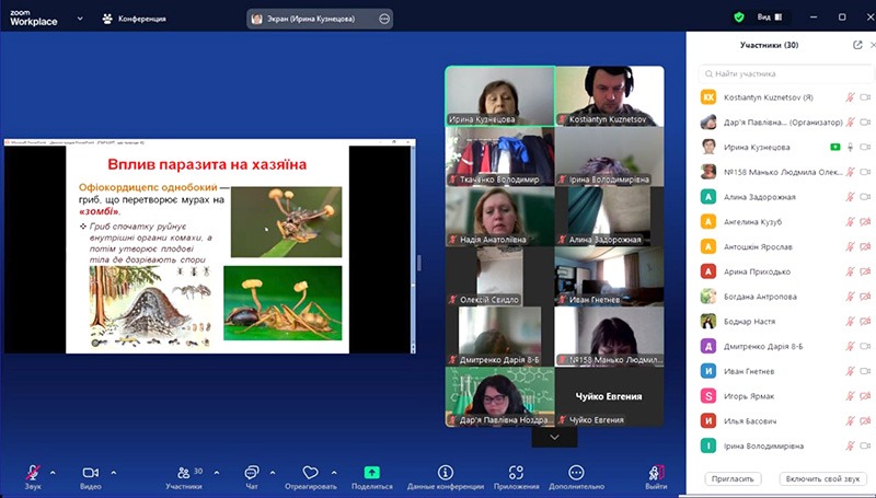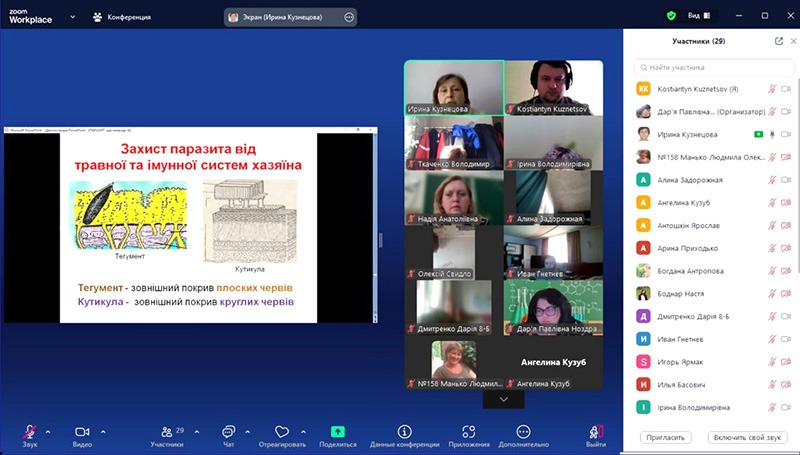 На другій зустрічі асистентка кафедри медичної біології Ірина Кузнєцова ознайомила школярів з дуже цікавою темою «Паразит – цар природи». На початку своєї доповіді вона обґрунтувала важливість визначення паразитизму як провідної форми існування організмів в природі. Потім були показані адаптаційно-пристосувальні механізми, які різні види паразитів використовують для виживання в організмі хазяїна. З учнями було проведено інтерактивну вікторину на платформі Kahoot, під час якої юні науковці змогли перевірити свої знання з біології. За її результатами були визначені переможці.