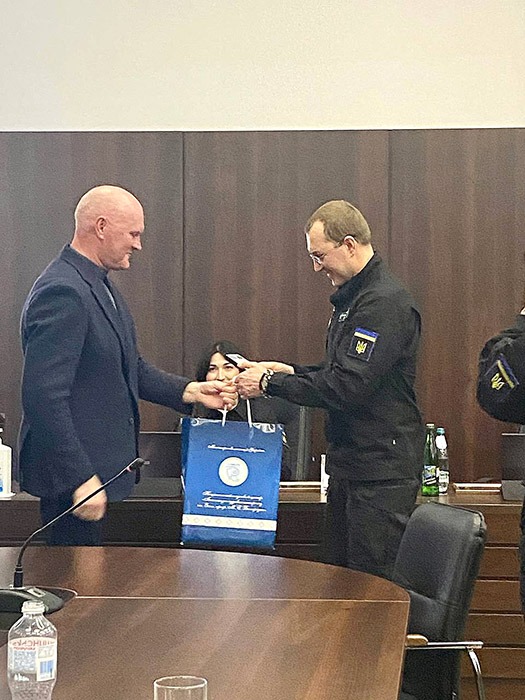 Під час урочистостей Валерій М’ясоєдов виступив з вітальним словом, наголосивши на важливості зберігання традицій наступності та підтримання наукових зв’язків між нашими закладами задля розвитку судової медицини в Харкові та України в цілому.