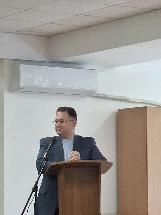 Професор Михайло Мирошниченко представив доповідь на тему: «Система “мати-плацента-плід” в освітньому процесі та науково-дослідній роботі в медичному університеті: етичні виклики в умовах воєнного стану», авторами якої також були Євгенія Громко, професорка Вікторія Лазуренко, професорка Олена Дядик, доцентка Ольга Лященко. Його доповідь вирізнялася високою актуальністю та значущістю, оскільки порушувала важливі питання, що нині перебувають у центрі уваги наукової та освітньої спільноти.