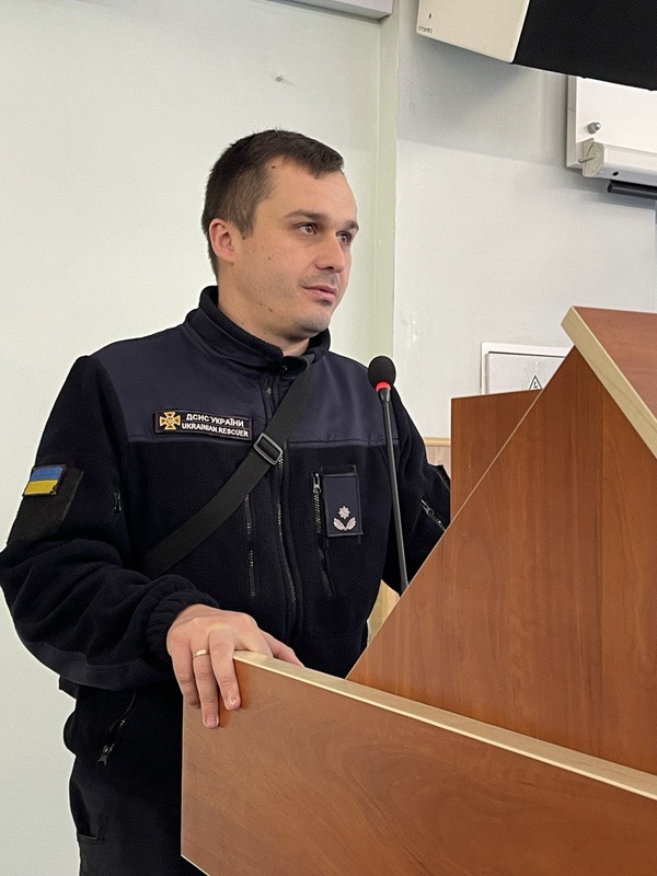 Інспектори відділу запобігання надзвичайним ситуаціям Шевченківського району Харківського районного управління Харківської міської територіальної громади головного управління Державної служби надзвичайних ситуацій у Харківській області поспілкувалися зі співробітниками університету та надали інструкції щодо того, як саме необхідно поводитися в надзвичайних ситуаціях.