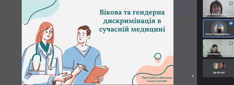 - «Вікова та ґендерна дискримінація в сучасній медицині» (Ганна Демченко, ІІ медичний факультет).