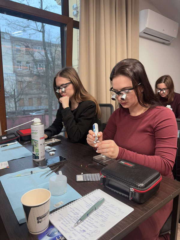 Лікарі-інтерни мали змогу відпрацювати практичні прийоми повторного ендодонтичного лікування з використанням оптики, наданою компанією Medegro, детально розбрати кейси складних клінічних випадків, відпрацювати правильну ергономіку, налаштування збільшення та фокусування, що є важливим елементом підвищення якості ендодонтичного лікування.