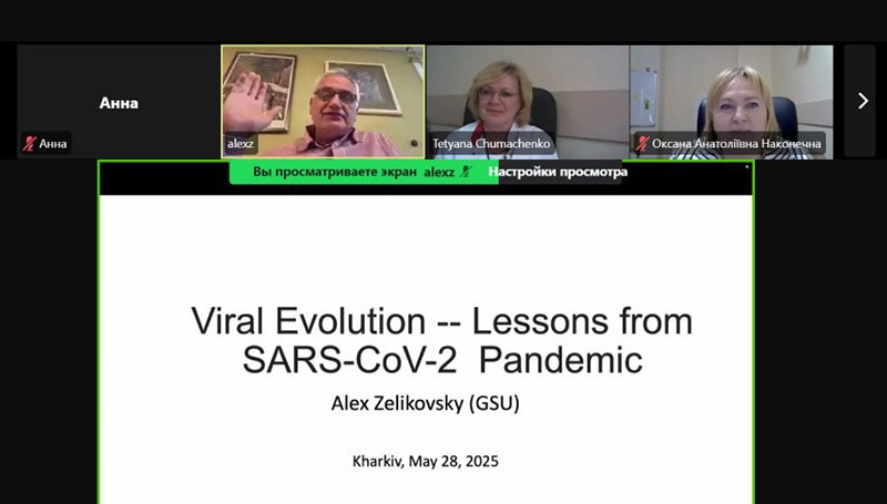 Професор Алекс Зеліковський присвятив свої лекції проблемам еволюції вірусів, поділився своїми поглядами й напрацюваннями та науковими досягненнями інших науковців щодо інструментів для прогнозування біологічних загроз, пов’язаних з майбутніми можливими пандеміями. В Україні спеціалістів з біоінформатики небагато, тому інформація, надана Алексом Зеліковським, була особливо цікавою і дозволила ознайомитись зі світовими трендами науки в сфері біоінформатики та епідеміології інфекційних хвороб.