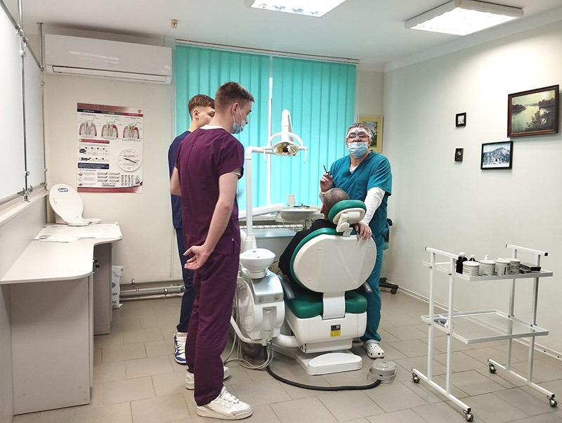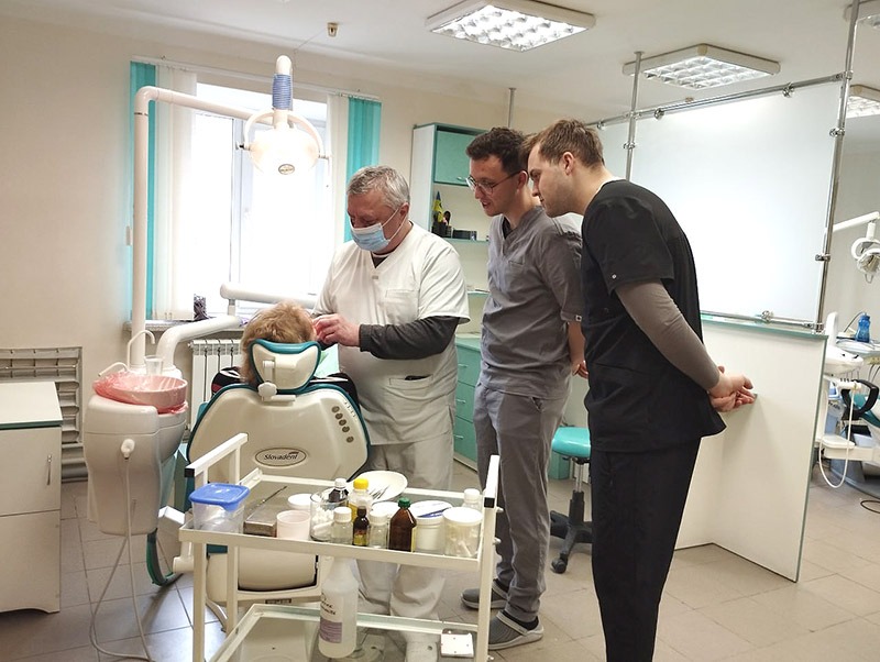 Важливим етапом для лікарів-інтернів стоматологів є заочна частина навчання в інтернатурі, яка проходить на клінічних базах, однією з яких є Університетський стоматологічний центр філія «Університетська лікарня» ХНМУ. Саме він увійшов до переліку клінік, де безкоштовно проводять санацію порожнини рота військовим і ветеранам війни. Тож лікарі-інтерни мають змогу безпосередньо ознайомитись із тим, як працює програма пілотного проєкту НСЗУ, з якими проблемами стикаються та які задачі вирішують лікарі-стоматологи університетської лікарні.