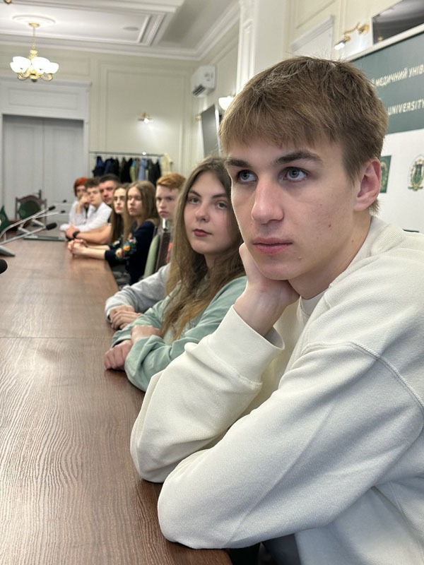 На захід завітала перша проректорка з науково-педагогічної роботи Наталія Савєльєва, яка наголосила, що зараз ми намагаємося адаптуватися до умов військової агресії, тому повинні реагувати на виклики часу. Також вона висловила упевненість у тому, що Україна вистоїть, переможе, продемонструє всьому світові наші можливості та зможе передавати наш досвід іншим країнам. «Ми завжди раді нашим друзям, які допомогли нам у багатьох заходах та продовжують допомагати, а також пишаємося нашою співпрацею, яка стосується не тільки матеріального компоненту, а й людського контакту», – наголосила пані Наталія.