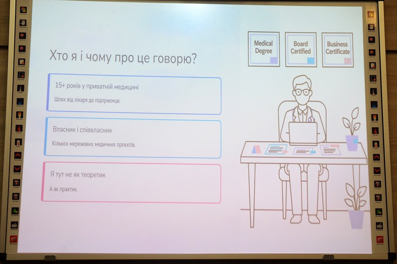 Спікером заходу став Сергій Замчій – лікар і підприємець, засновник мережі з десяти медичних клінік в Україні. Його виступ став чесною розмовою про реалії професії та можливості, які відкриває медицина сьогодні.