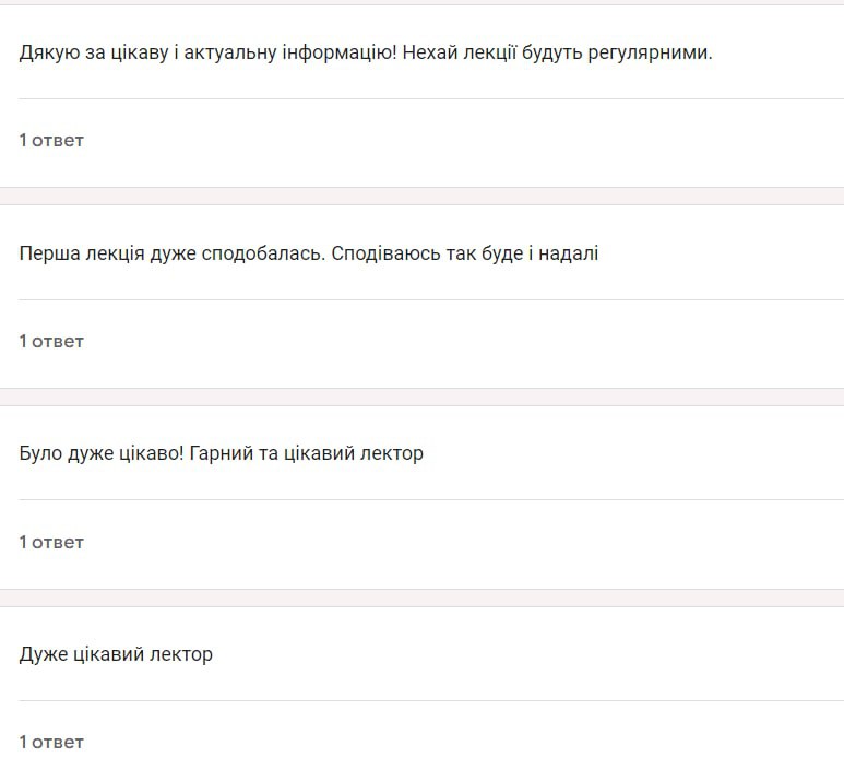 Учасники заходу могли поставити запитання та отримати кваліфіковану відповідь або консультацію, також кожному з них буде надіслано інтерактивні конспекти лекцій.
