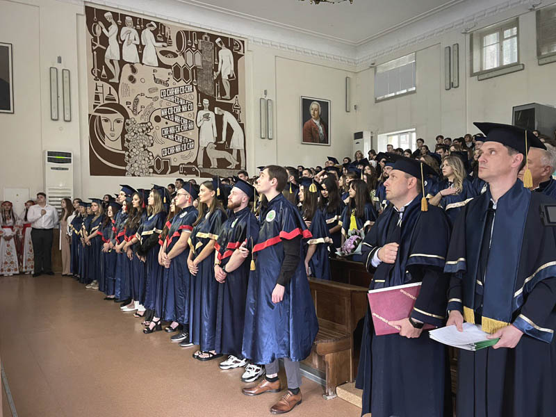 Випускників привітав ректор університету Валерій Капустник. «Ваші роки навчання, безумовно, були складними і сповненими викликів. Ви зіткнулися з новими реаліями, зі стресом та неспокоєм, які супроводжували вас у ці складні часи, мусили перестроїтися на дистанційне навчання. Проте ваша мужність, міць та волелюбність допомогли вам подолати усі виклики. Ваші зусилля, знання та професіоналізм матимуть вирішальне значення в покращанні життя інших людей, особливо у важкі часи, які ми переживаємо», – зазначив керівник вишу.