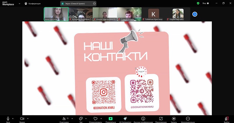 13 червня 2025 року представники команди «Донорство ХНМУ» — Анна Матузок та Олексій Бухмін — за запрошенням Волонтерського комітету Студентського парламенту Харківського національного педагогічного університету імені Г.С. Сковороди провели онлайн-зустріч з нагоди Всесвітнього дня донора крові. Захід об’єднав студентську молодь навколо важливої теми — культури донорства.