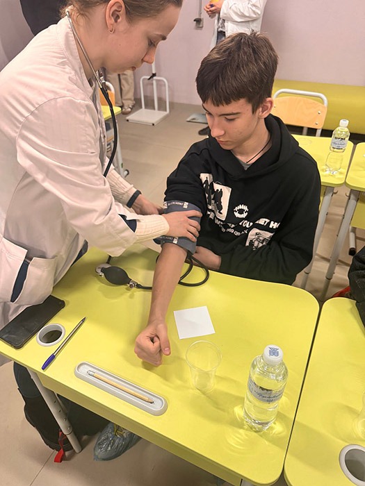 Здобувачі вищої освіти І медичного факультету надали інформацію щодо здорового способу життя та взяли участь у вимірюванні артеріального тиску, визначення індексу маси тіла тощо. Відеоматеріали, створені за підтримки студентського самоврядування викликали інтерес слухачів.