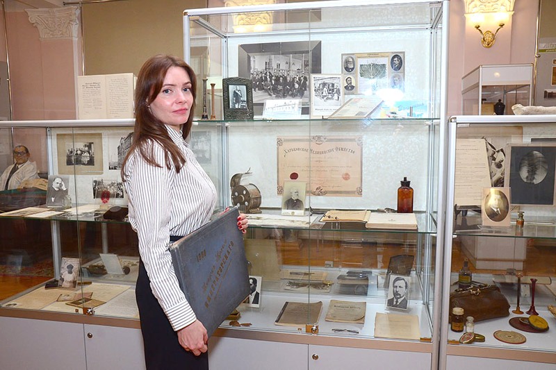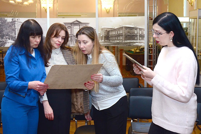 Під час спілкування Юлія Рибінська, помічниця ректора Яна Бєлєвцова, директорка Наукової бібліотеки Ірина Киричок, а також зберігачки фондів Комплексу «Музей медицини» ХНМУ Олена Семененко та Ольга Виноградова занурилися в історичне минуле університету, гортаючи сторінки книг, що несуть відбиток минулих століть.