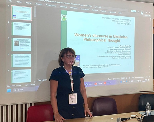 З 1 по 8 серпня 2024 р. завідувачка кафедри філософії та суспільних наук Катерина Карпенко взяла участь у роботі 25-го Всесвітнього філософського конгресу (XXV WCP, Рим, 2024).