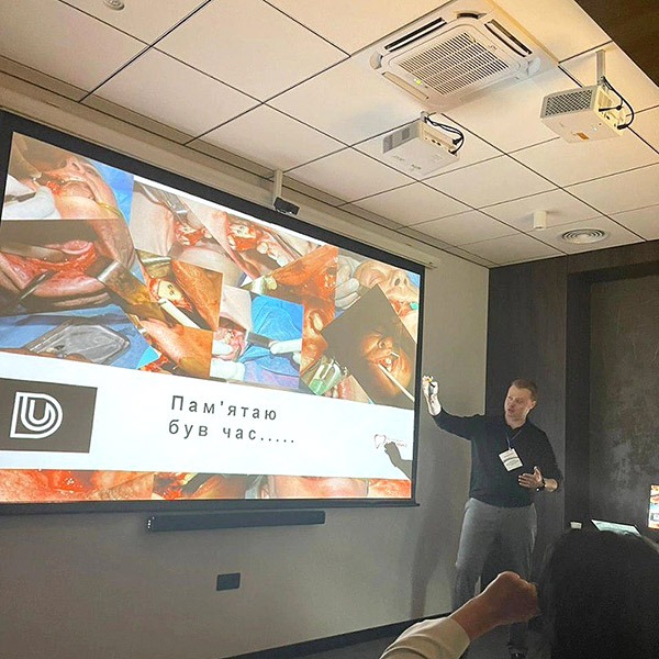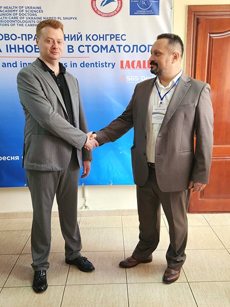 Руслан Якименко представляв Харківську стоматологічну школу та Університетський стоматологічний центр ХНМУ з доповіддю «Використання коротких імплантів в умовах обмеженого об’єму кісткової тканини. Компроміс чи стандарт?», а також був модератором хірургічної секції.