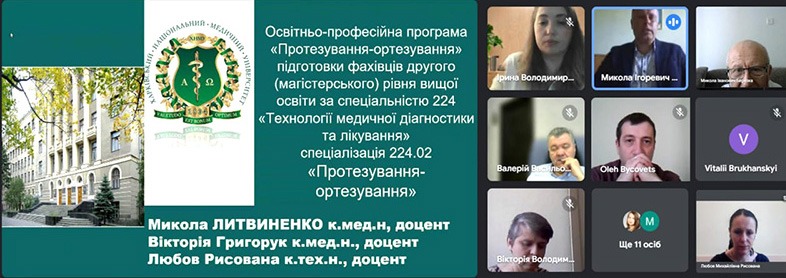 21 травня 2024 р. в онлайн-режимі було презентовано нову освітньо-професійну програму «Протезування-ортезування» з підготовки фахівців другого (магістерського) рівня вищої освіти за спеціальністю 224 «Технології медичної діагностики та лікування» спеціалізація 224.02 «Протезист-ортезист».