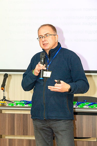 Перший блок заходу розпочався з доповіді медичного директора, професора Володимира Коростія щодо Програми фізичної та психологічної реабілітації пацієнтів з ампутаціями, базованої на швидкому протезуванні в Університетській клініці.