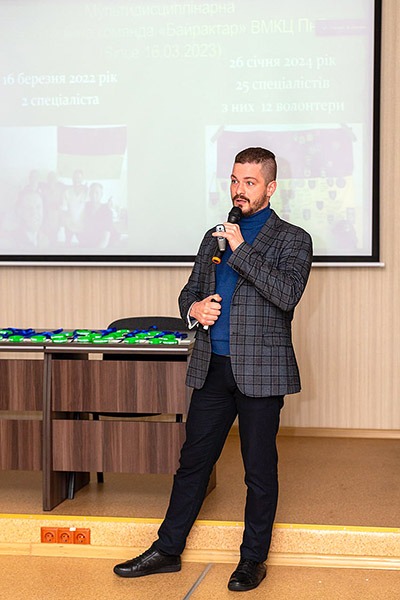 Про Всеукраїнську програму ментального здоров’я «Ти як?» доповіла координаторка Всеукраїнської програми ментального здоров’я в Харківській області, доцентка кафедри прикладної психології ХНУ ім. В.Н. Каразіна Лілія Зотова. Надалі про те як побудувати мультидисциплінарну команду учасникам заходу розказав лікар-невролог Військово-медичного клінічного центру Північного регіону Іван Дарій.