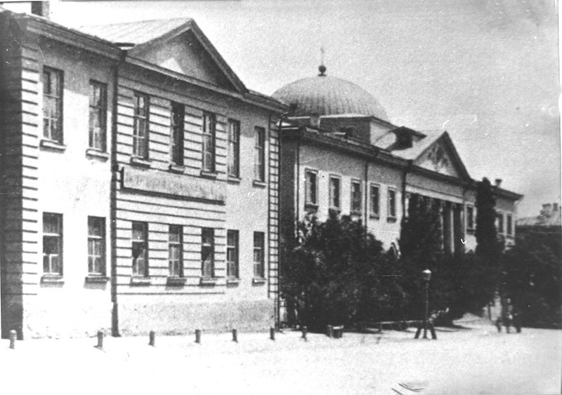 - Університетський флігель (ліворуч), де були розташовані перші клініки медичного факультету