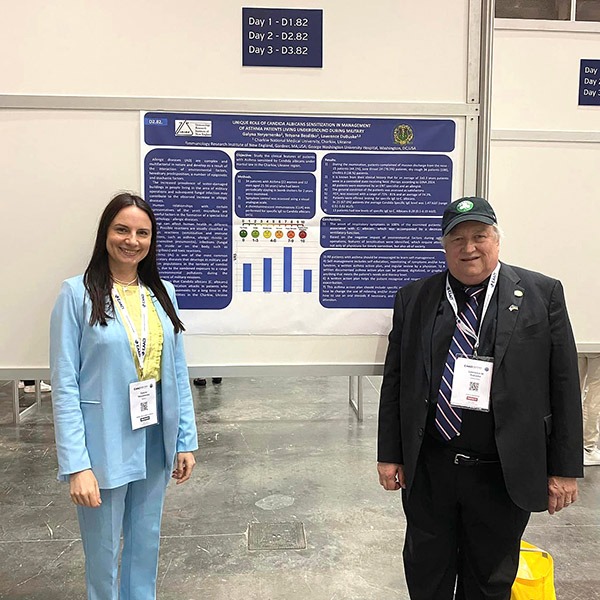 Наукові знання та практичні семінари надали нашій команді з України безцінну інформацію, а також можливість розширити свій набір навичок та підвищити досвід, який буде впроваджено у наукову, педагогічну та практичну діяльність. Пані Галина представила постер на тему: «Unique role of candida albicans sensitization in management of asthma patients living underground during mititary» у співавторстві із професором Lawrence DuBuske, Immunology Research Institute of New England, Gardner, MA, USA; George Washington University Hospital, Washington, DC, USA, який викликав багато дискусійних запитань у товариства та надав можливість ще раз нагадати про умови проживання та психологічний стан українців у Харківському регіоні в останні 2 роки.