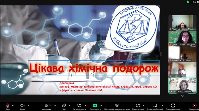 З 10 по 12 березня 2025 р. в рамках профорієнтаційної робити за підтримки Управління освіти адміністрації Київського району Харківської міської ради викладачки кафедри медичної та біоорганічної хімії Ганна Сирова та Наталія Чаленко в дистанційному форматі провели три зустрічі із ліцеїстами 10–11 класів Харківських ліцеїв № 107 і № 158. Особлива увага була приділена питанням вступної кампанії до ХНМУ.