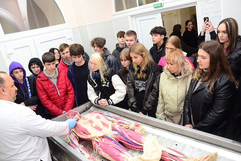 Третю локацію представила кафедра анатомії людини, клінічної анатомії та оперативної хірургії за участі співробітників Комплексу «Музей медицини» ХНМУ. Під час екскурсії майбутні вступники завітали до навчального музею кафедри та познайомилися з сучасними технологіями викладання анатомії.