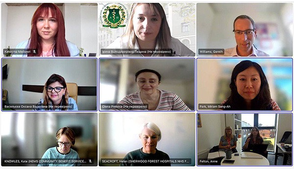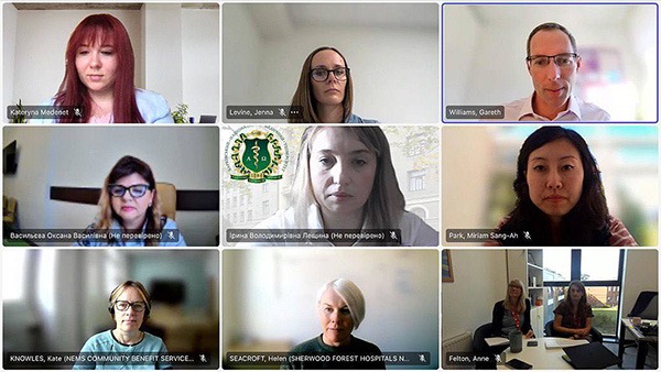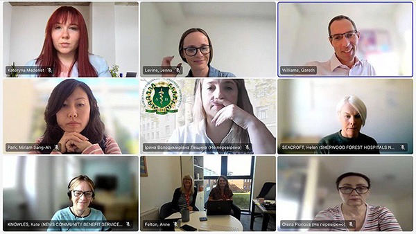 На початку зустрічі начальниця відділу міжнародних зв’язків та грантової роботи Оксана Васильєва привітала колег з NTU та подякувала за непохитне бажання допомагати ХНМУ за різними напрямами роботи, у тому числі з покращання підготовки медичних сестер на бакалаврському та магістерському рівнях. NTU на зустрічі представляла потужна команда у складі: керівниця відділу передової клінічної практики Шервудської лікарні NHS Foundation Trust Хелен Сікрофт, керівниця відділу передової клінічної практики Ноттінгема та Ноттінгемширської інтегрованої системи охорони здоров’я Кейт Ноулз, керівниця Інституту охорони здоров’я та суміжних професій Енн Фелтон, заступниця директора Інституту охорони здоров’я Ніккі Величко, викладачки Інституту охорони здоров’я та суміжних професій Дженна Левін та Еліс Тейлор, старший викладач Школи соціальних наук NTU Міріам Санг-Ах Парк, заступник декана з питань міжнародного співробітництва набору та стратегії NTU Гарет Вільямс.