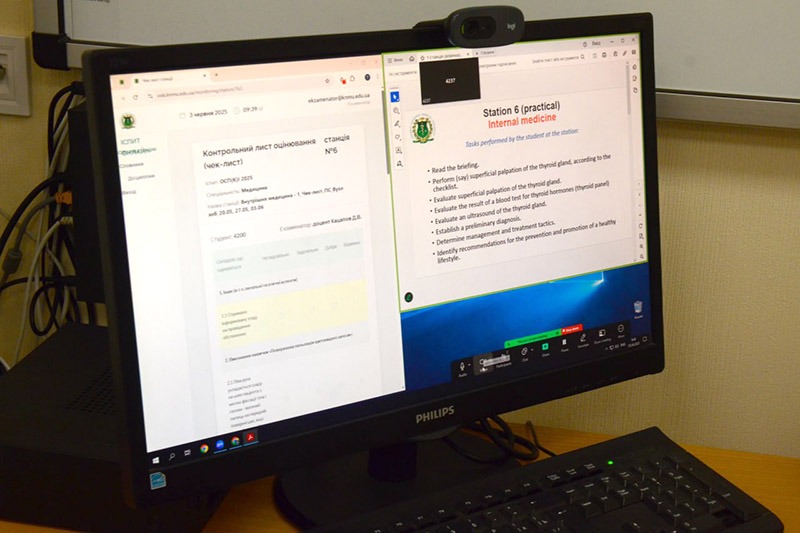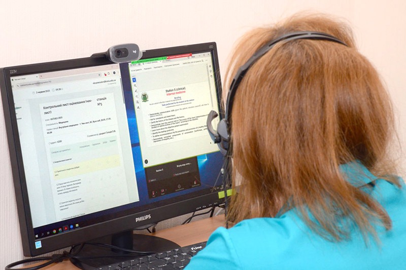 Іспити здобувачі освіти складають у гібридному форматі за напрямками: терапія, хірургія, педіатрія, акушерство та гінекологія, медицина надзвичайних станів. За проведенням іспитів уважно спостерігають члени екзаменаційної комісії на чолі з головою професоркою Наталією Макєєвою та за участю директора ННІ ПІГ Дмитра Маракушина.