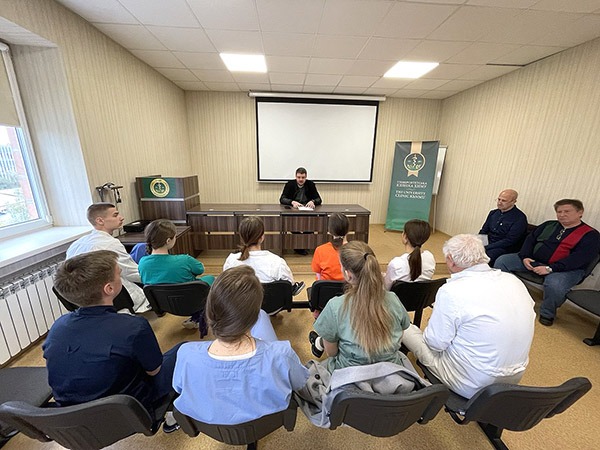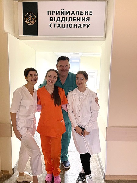 Перед студентами з привітальним словом виступив директор Університетської клініки Євген Сінько, наголосивши, що найбільш ефективною практична підготовка є саме в лікарнях під час навчання в медичному виші, а також ознайомив з роботою лікувального закладу.