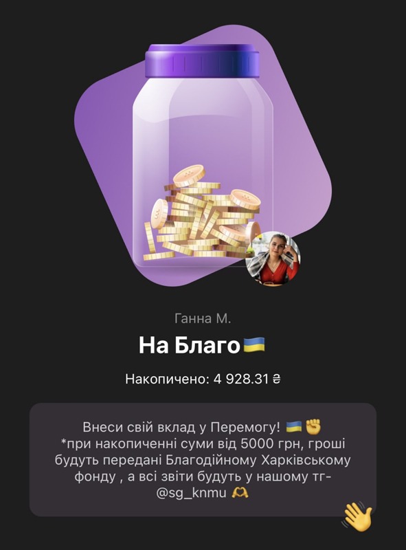 Номер картки банки: 5375 4112 0082 7074
