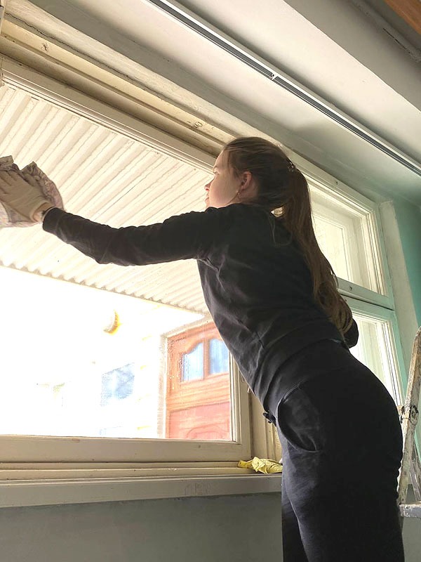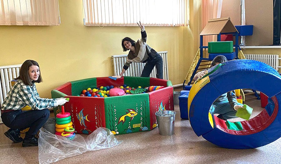 Команда волонтерів взяла участь у підготовці приміщень Будинку дитини №3 до експлуатації у якості терапевтичних занять, масажів та занять для дітей. Студенти допомагали розібрати іграшки, переставити меблі, помити вікна та підлогу. Крім того, були прибрані та підготовлені кімнати у бомбосховищі дитячого будинку, де будуть проводитися терапевтичні заняття ігрового формату.
