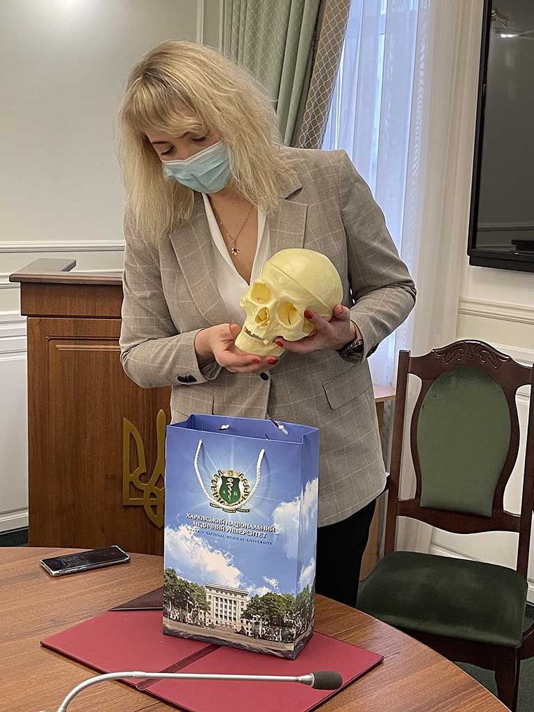 Пані Ірина вручила студентам сертифікати про проходження навчання в нашому медичному виші, а також наголосила, що одним із головних пріоритетів нашого університету є студентоцентрування: «Ми робимо все можливе для комфортного навчання молоді. Крім того, ми багато уваги приділяємо практиці – робимо все можливе, щоб вона була доступною для студентів, бо розуміємо, що без таких навичок випускник буде не конкурентоспроможним. Ще один наш пріоритет – розвиток сучасник технологій, як-от Центр тривимірних технологій, завдяки якому ми можемо створювати матеріал, який необхідний саме нам».