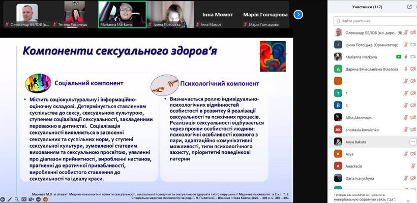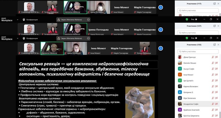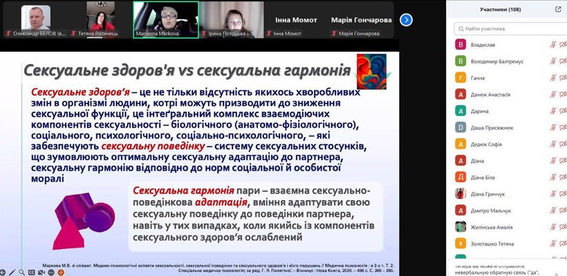 Так, 6 жовтня у рамках спільного проєкту завідувачка кафедри сексології, психотерапії та медичної психології, професорка Маріанна Маркова прочитала відкриту онлайн-лекцію для студентів і викладачів Харківського національного медичного університету та Вінницького національного медичного університету ім. М.І. Пирогова на тему: «Оргазм vs Тривога (про секс, стосунки і виживання під час війни)». Лекція викликала значний інтерес: у ній взяли участь 200 студентів і викладачів, які мали змогу обговорити надзвичайно актуальні питання психічного здоров’я, інтимності та стресостійкості в умовах війни.