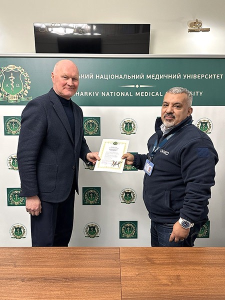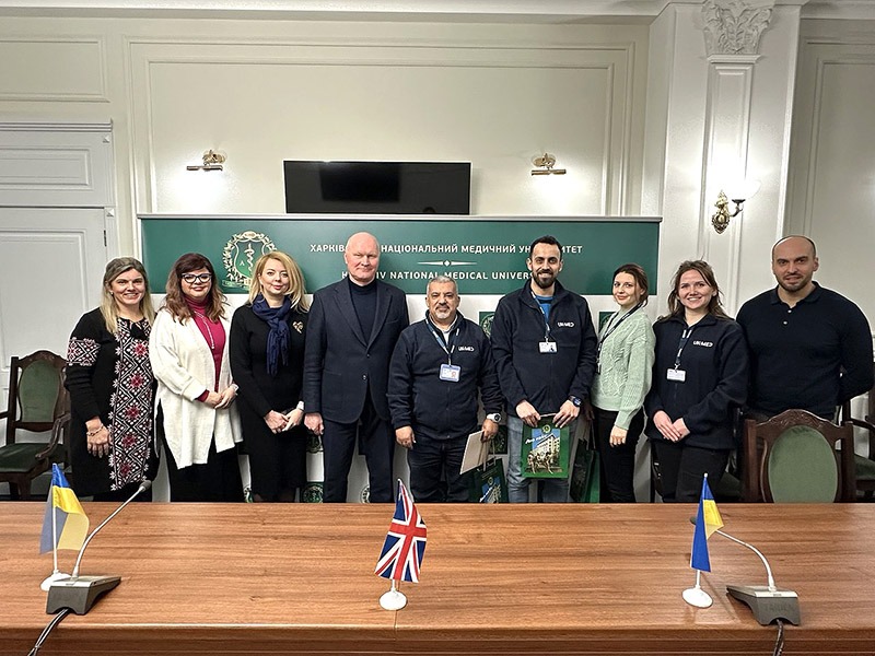 Уже протягом 2-х років ХНМУ активно співпрацює з провідною благодійною організацією БО «БФ «UK-MED» з надання медичної допомоги, яка заснована на базі британської Національної медичної Служби. Понад 1000 майбутніх лікарів – здобувачів освіти ХНМУ, а також лікарів екстреної медичної допомоги лікувальних закладів Харківщини, де розташовані клінічні бази медичного вишу, пройшли навчання за програмами, створеними фахівцями цієї організації на підставі міжнародних протоколів надання медичної допомоги.