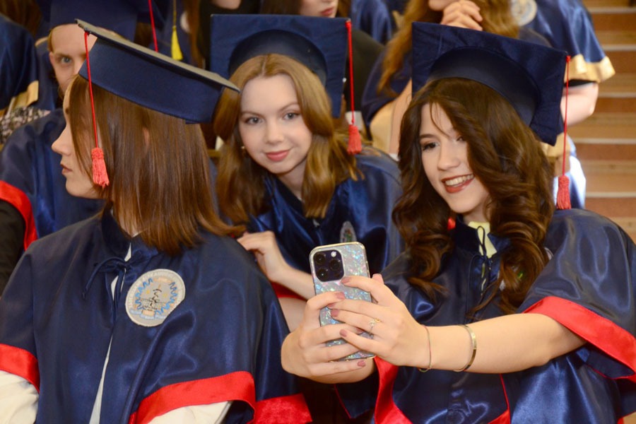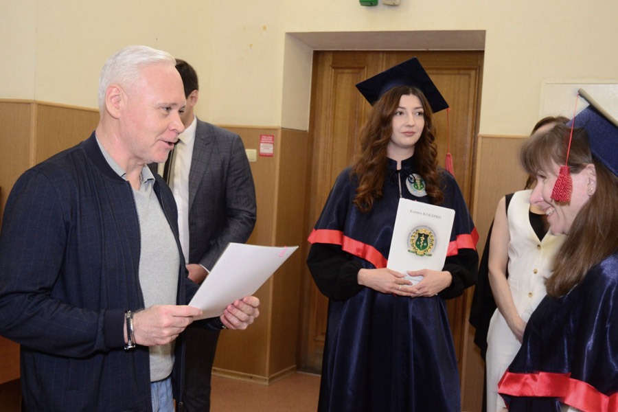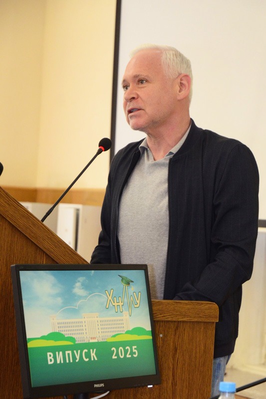 Ректор ХНМУ Валерій М’ясоєдов привітав молодих лікарів словами вдячності й гордості: «Сьогодні збулася ваша мрія – ви отримуєте диплом, який засвідчує не лише факт закінчення університету, а й роки наполегливої праці, отримання знань, відданість справі. У минулому залишаються безсонні ночі, іспити, заліки, сесії, КРОК 1 та КРОК 2. Ваш період навчання прийшовся на важкі часи, і ви не лише навчалися, а й допомагали країні – здавали кров, волонтерили, чергували в лікарнях, бо ви є не лише фахівцями, а громадянами країни, і я щиро дякую вам за людяність та мужність».