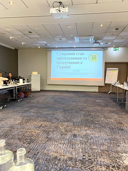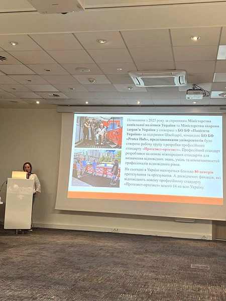 Пані Олена представила останні новини щодо протезування-ортезування в Україні, відкриття освітньої програми «Протезування-ортезування» в ХНМУ, досягнення та перемоги за останній рік, виклики та перешкоди, майбутні цілі та можливості для співпраці в цьому напрямку.