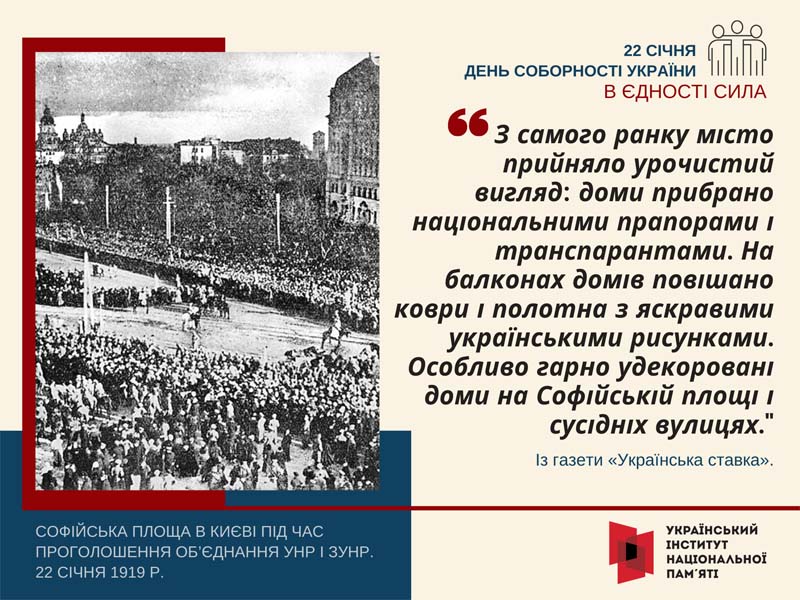 До Дня Соборності України та 105-ї річниці проголошення незалежності Української Народної Республіки