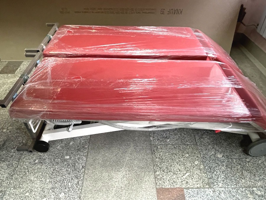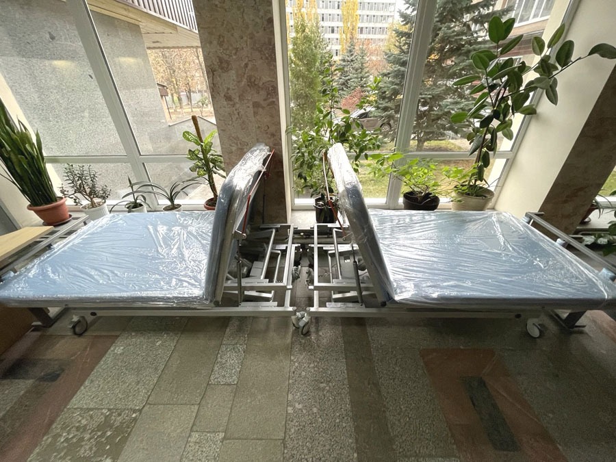 На початку листопада Університетська лікарня ХНМУ отримала нове обладнання для реабілітаційного відділення, а саме 4 реабілітаційні столи для терапії, 2 кушетки, 2 комплекти балансувальних подушок, 5 килимків для вправ на підлозі та 2 степ-платформи.