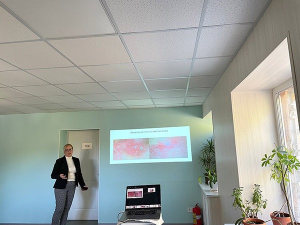 Після лекції пані Ірина провела дерматоскопію для всіх присутніх, на практиці демонструючи методи діагностики та ключові симптоми, що допомагають відрізнити атипові невуси від злоякісних новоутворень.