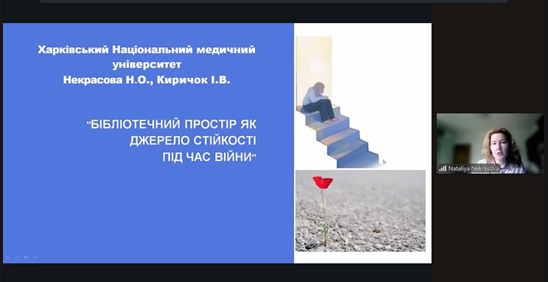 З привітанням до учасників звернулася перша проректорка з науково-педагогічної роботи Наталія Савєльєва. Вона зазначила, що Наукова бібліотека ХНМУ залишається осередком знань, культури та людяності, подякувала її колективу за віддану працю, побажала всім учасникам плідної роботи, цікавих дискусій, творчих відкритттів і впевненого руху вперед. Також теплі слова пролунали від представників провідних бібліотек країни, наукової спільноти та громадських об’єднань.