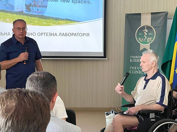 Під час презентації заступник директора Університетської клініки Володимир Коростій розповів про структуру клініки, історію створення проєкту та його подальшого розвитку, виклики під час лікування ампутацій та їх вирішення.