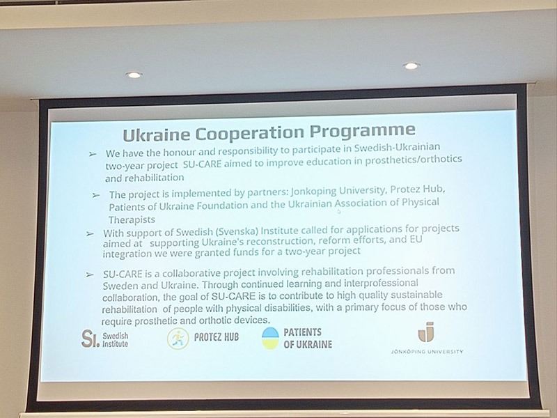 Проєкт реалізується за ініціативи Protez Hub, у партнерстві з Jönköping University, БФ «Пацієнти України», Всеукраїнським об’єднанням фізичних терапевтів та за підтримки Svenska institutet (Swedish Institute). Одне з головних завдань проєкту SU-CARE – покращання магістерських програм з протезування-ортезування, підвищення педагогічних та клінічних навичок викладачів і супервізорів.